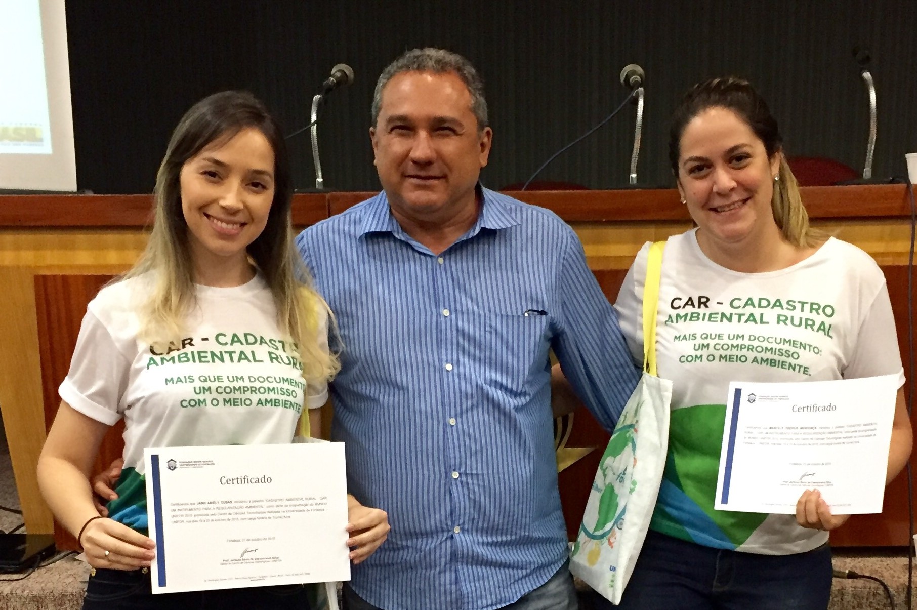 As técnicas engenheiras florestais da Diretoria Florestal-DIFLO da Superintendência Estadual do Meio Ambiente, Jaine Ariély Cubas e Marcela Eberius Mendonça, apresentaram o Cadastro Ambiental Rural-CAR, em palestra realizada nesta quarta feira (21), como parte da programação do Mundo Unifor 2015. O maior evento acadêmico da Universidade de Fortaleza, reúne , até hoje (23), certa de 25 mil participantes, entre professores, pesquisadores, alunos e interessados.