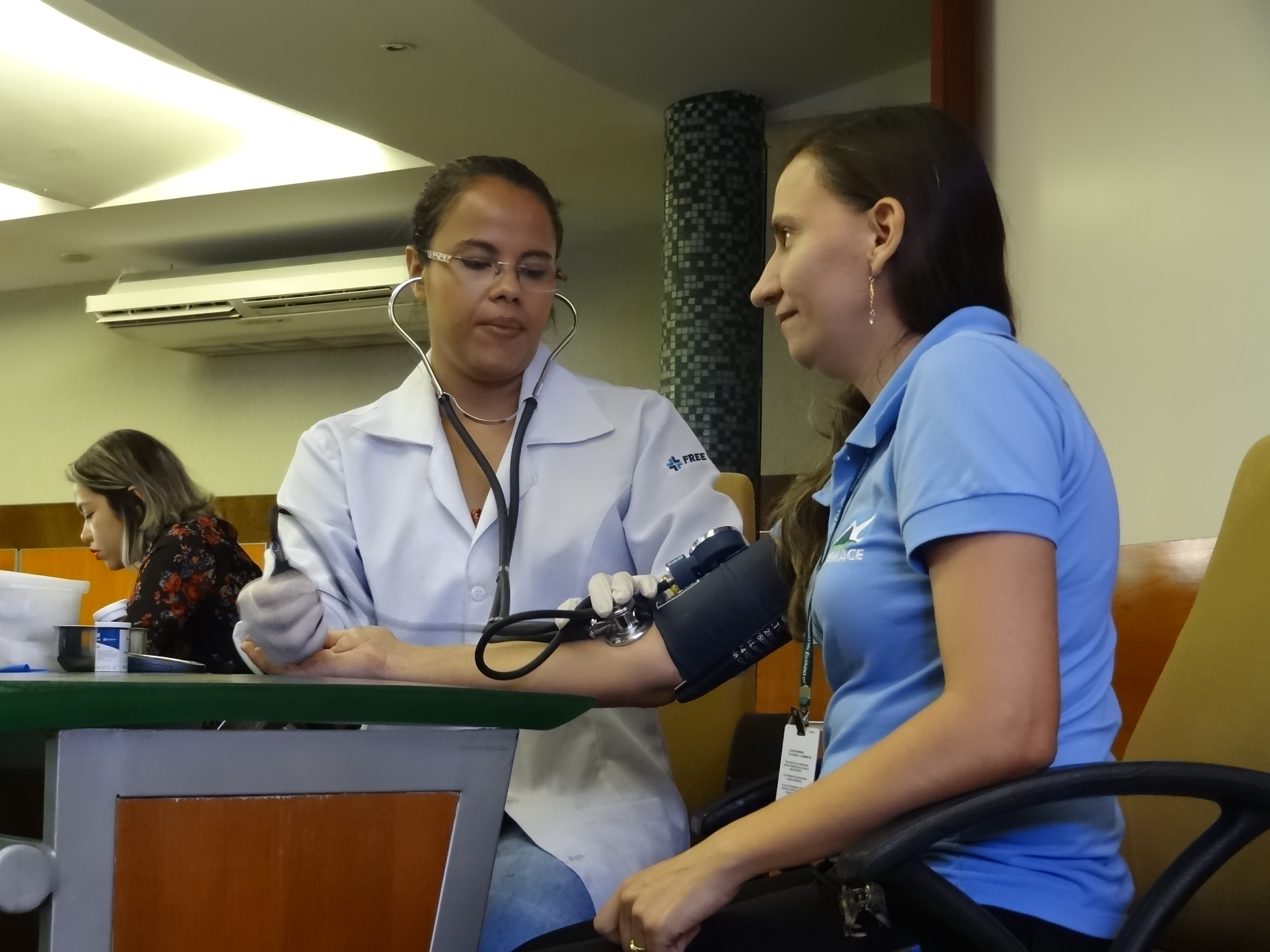 A Superintendência Estadual do Meio Ambiente (Semace), por meio da Gerência de Recursos Humanos (Gereh), ofereceu ao seus colaboradores um dia de serviços para cuidar da saúde. Durante toda esta segunda-feira (25), uma profissional da área atendeu aos trabalhadores aferindo a pressão arterial e realizando exames de glicemia para ver a quantidade de açúcar no sangue.
