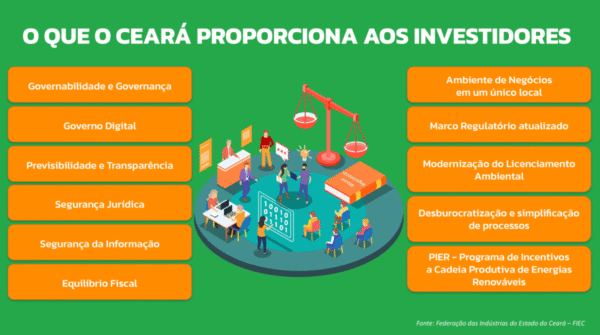 “Aqui mostramos o que realizamos em termos segurança jurídica, equilíbrio fiscal do estado e licenciamento ambiental mais célere, para garantir que esses investimentos aconteçam em diálogo com as comunidades, as empresas e as instituições, gerando possibilidades de crescimento para todos os cearenses”, concluiu Elmano de Freitas.